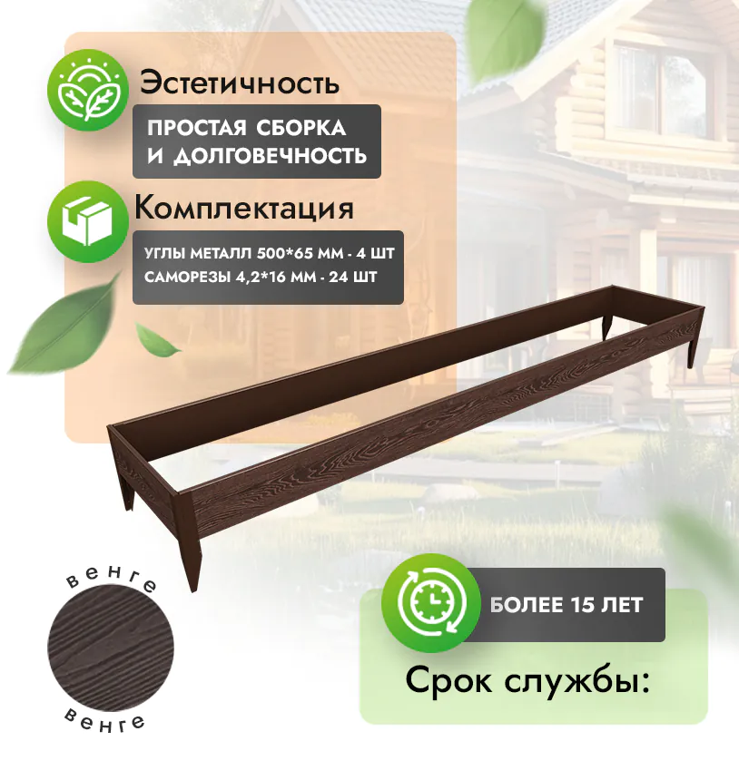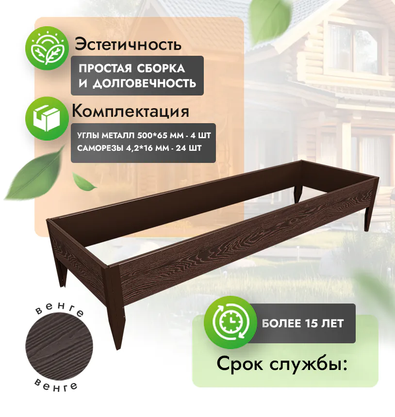 • Комплект грядок ДПК прослужит минимум 15 лет даже в самых агрессивных условиях.